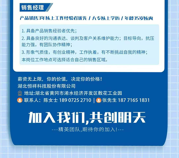 我們招人啦!湖北恒祥科技股份有限公司團隊擴張,一次放出四個重磅職位!虛位以待,職等你來!